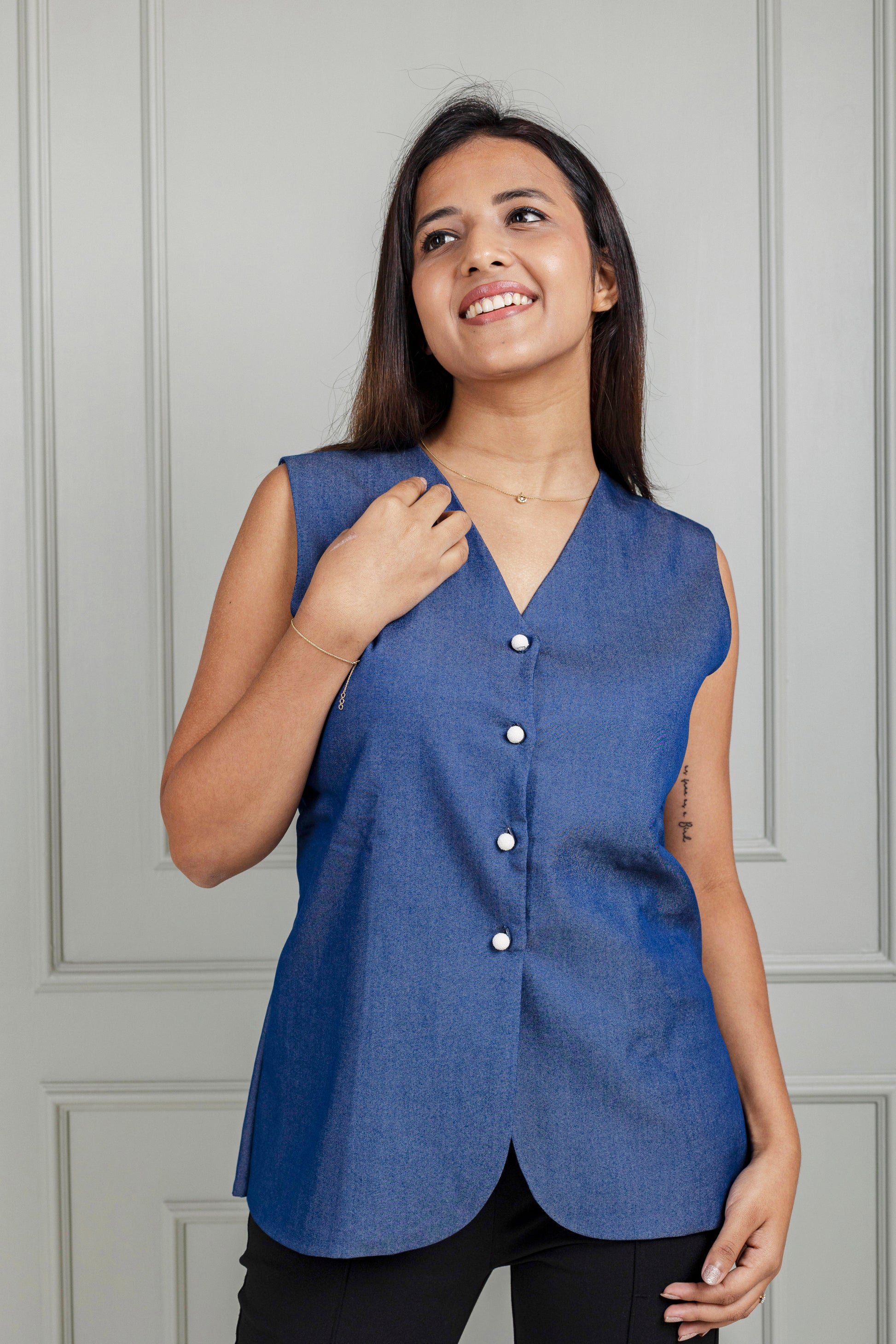 - A versatile layering essential — pair it over shirts for work polish or wear it solo with trousers/jeans for a chic casual vibe